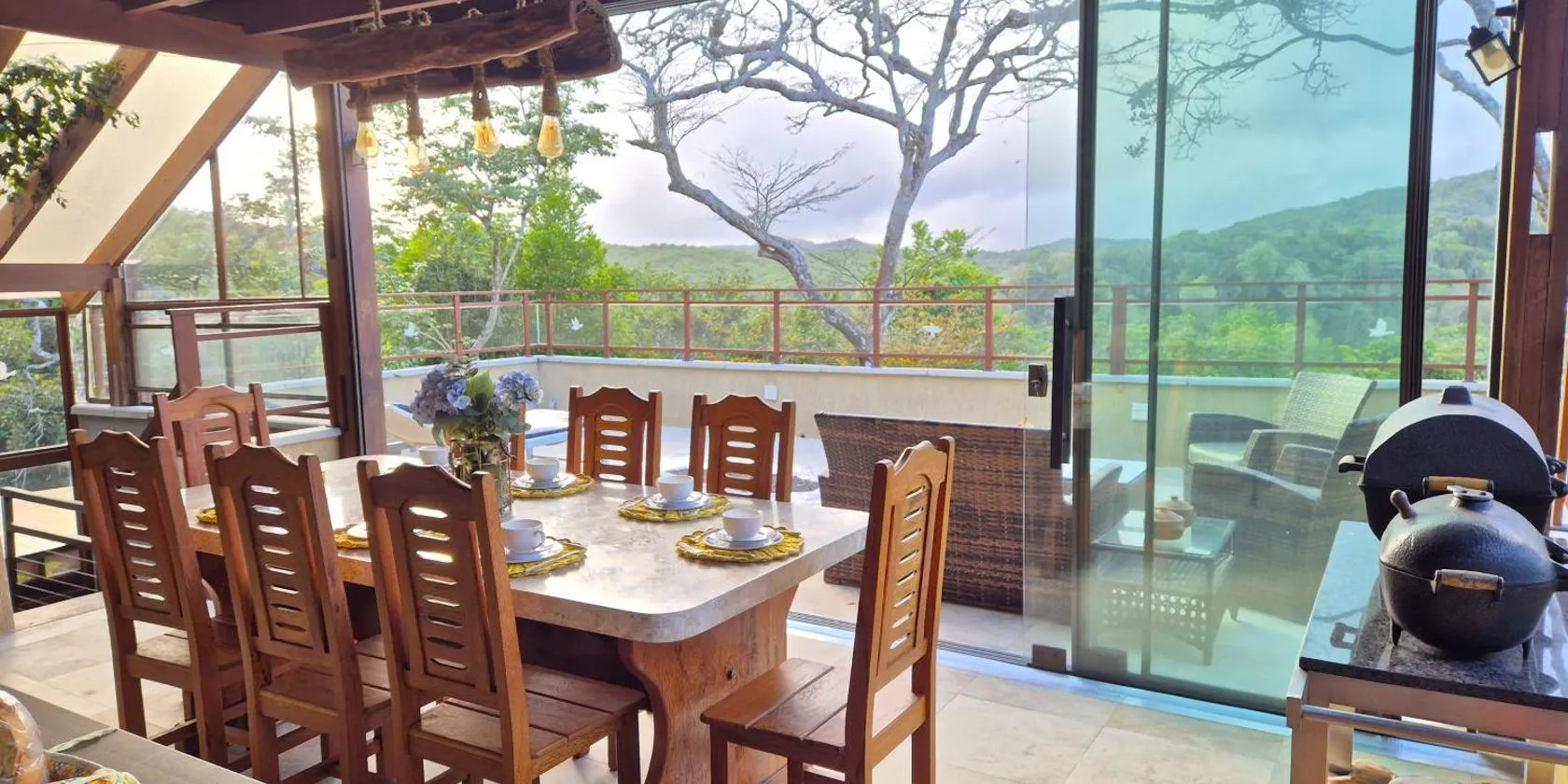 Casa boa vida位于塞阿拉州的瓜拉米兰加,拥有阳台,享有山景。这家自助式别墅配有花园和免费私人停车位。 这家别墅配有5间独立卧室、起居室、带冰箱和烤箱的设施齐全的厨房以及5间浴室。这家别墅还提供休息区以及5间带淋浴设施的浴室。 住宿内部配备露台。客人可以在这家别墅附近体验徒步。 平托·马丁斯机场距离住宿有93公里。