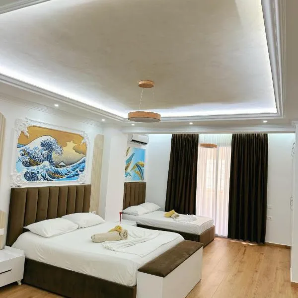 Wave Beachfront Apartments位于都拉斯,享有海景,提供餐厅、客房服务、酒吧、花园和露台。住宿提供免费WiFi,内部提供私人停车位。 每间房间都配有阳台、带冰箱的设施齐全的厨房、带沙发床休息区、平板电视以及带淋浴设施和免费洗浴用品的私人浴室。住宿还提供烤箱、炉灶和电热水壶。 这家公寓式酒店提供自行车租赁服务和汽车租赁服务。 Wave Beachfront...