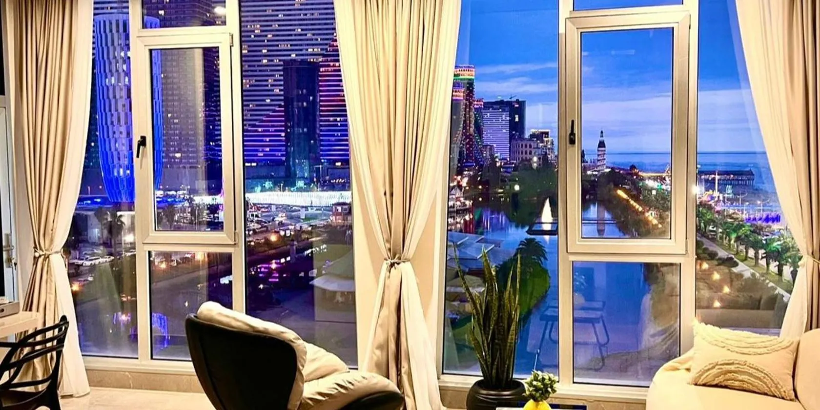 45th floor of sunrises & sunsets距离巴统海滩(Batumi Beach)有6分钟步行路程,配备花园、酒吧和24小时前台,让客人尽享便利。住宿配备免费WiFi。 房间提供享有市景和海景的露台或阳台,配有空调、休息区、卫星频道平板电视和小厨房。 这家公寓式酒店距离阿里和尼诺纪念碑有5公里,距离巴统火车站有6.4公里。巴统国际机场距离住宿有5公里。