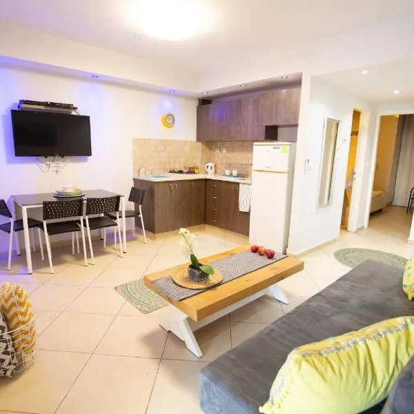 ביתאורןאילת- Beit Oren Eilat位于埃拉特,配有空调住宿,距离皇家游艇俱乐部有14公里,距离亚喀巴港有25公里,距离亚喀巴塔拉湾有29公里。住宿提供的免费WiFi,内部提供私人停车位。 部分房间配有有线频道平板电视、带冰箱的设施齐全的厨房,以及带淋浴设施和免费洗浴用品的私人浴室。 这家公寓式酒店距离Eilat Botanical...