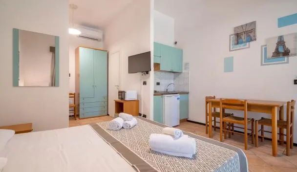 Residence Cala Bianca位于托雷斯港,配备露台,距离阿克多尔奇海滩(Beach Acque Dolci)有不到一公里,距离Alghero Marina有37公里。住宿提供的免费WiFi,内部提供私人停车位。 部分房间配备空调、平板电视、洗衣机、咖啡机和小厨房.