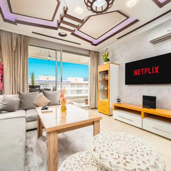 Atlantic Palm Beach公寓式酒店配有一个室外游泳池,提供自助式公寓和免费WiFi。 Atlantic Palm Beach公寓式酒店的所有空调公寓均享有大海或泳池的景致,提供需额外付费的保险箱。 Atlantic Palm Beach公寓式酒店拥有一间餐厅,并提供杂货配送服务、共用休息室和干洗服务等其他服务及设施。 公寓式酒店距离Al Massira Airport机场有19公里。