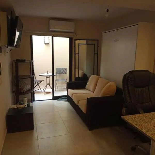 Santiago del Estero Micro Centro位于圣地亚哥-德尔埃斯特罗,享有市景,提供免费WiFi。 这家空调公寓配有1间卧室、起居室、带冰箱和电热水壶的设施齐全的厨房以及1间带坐浴盆和淋浴设施的浴室。1间浴室配有浴缸,也提供免费洗浴用品,提供毛巾和床上用品。 梅尔帕索机场距离住宿有5公里。