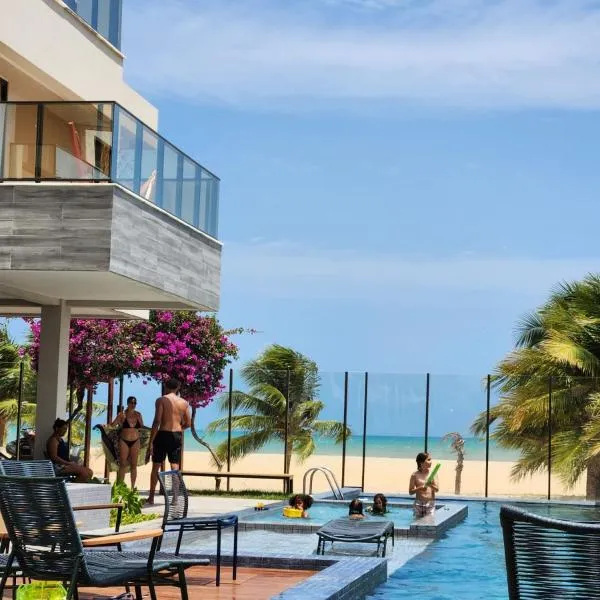 Apartamento à beira-mar em São Miguel do Gostoso距离Heel Lighthouse约有21公里,提供室外泳池和免费WiFi。这家住宿距离马塞约海滩(Maceió Beach)有4分钟步行路程,配备露台和免费私人停车位。 这家空调公寓配有2间卧室、厨房和2间浴室。这家公寓也配备2间浴室。 这家公寓的客人可以使用桑拿浴室。