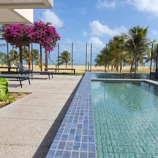 Térreo com 3 suítes beira-mar位于圣米格尔-杜戈斯托苏,距离马塞约海滩(Maceió Beach)有不到4分钟步行路程,距离Heel Lighthouse有21公里,提供免费WiFi、空调和户外游泳池。这家自助式公寓拥有私人泳池、花园和免费私人停车位。 这家公寓提供露台,享有海景,配有3间卧室、起居室、平板电视、带冰箱和烤箱的设施齐全的厨房以及3间带淋浴设施的浴室。