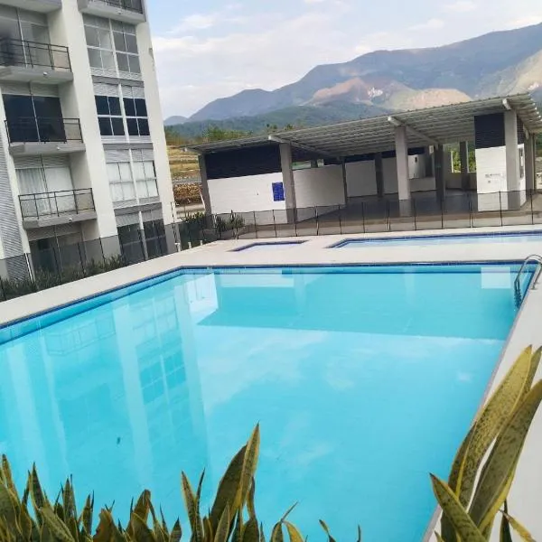 Confortable y Hermoso Apartamento en Melgar WiFi 200MB位于梅尔加,提供带免费WiFi的山景客房,配备户外游泳池、花园和露台。这家公寓配备免费私人停车位和24小时前台。 这家公寓提供阳台,享有市景,配有1间卧室、起居室、平板电视、带冰箱和烤箱的设施齐全的厨房以及1间带淋浴设施的浴室。1间浴室提供免费洗浴用品。