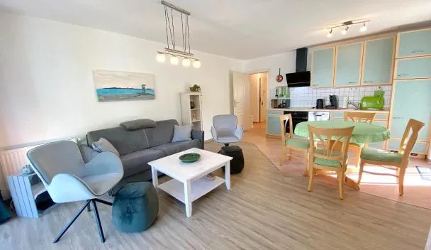 Ferienwohnung Luxus Apartment MeerFreude Sellin坐落于奥斯赛拜-塞林,配有室外泳池,享有海景。这家住宿距离塞林小狗海滩(Sellin Dog Beach)有3分钟步行路程,配备露台和免费私人停车位。 这家公寓配有2间卧室、带冰箱和洗碗机的厨房以及2间带淋浴设施、免费洗浴用品和洗衣机的浴室。这家公寓还提供电视以及2间带吹风机的浴室。