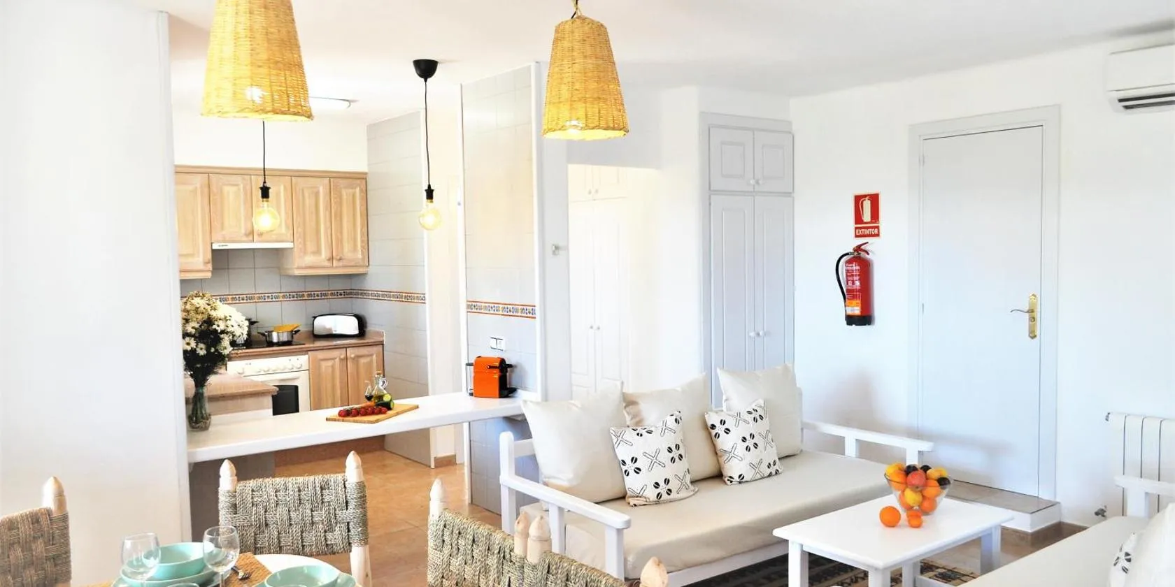 Formentera Suite 5享有市景,配备露台和电热水壶,距离普約爾斯海灘(Es Pujols Beach)约有3分钟步行路程。入住这家公寓的客人可以使用免费WiFi和阳台。 这家空调公寓配有2间卧室、起居室、带冰箱和咖啡机的设施齐全的厨房以及1间带坐浴盆和淋浴设施的浴室。这家公寓还提供平板电视以及1间带吹风机的浴室。 前台工作人员会讲德语、英语、西班牙语和法语,可全天候提供建议。
