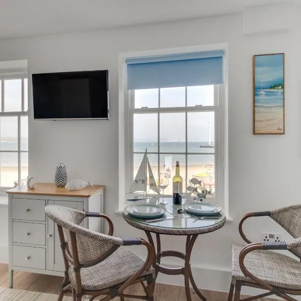Sea-Glimpse Studio on Seafront坐落于韦茅斯,距离韦茅斯海滩仅有几步路,提供海滨住宿和免费WiFi。这家公寓距离金帽有40公里,距离波特兰城堡有8.4公里。 这家公寓配有1间卧室、起居室、带冰箱和电热水壶的设施齐全的厨房以及1间带淋浴设施和免费洗浴用品的浴室。这家公寓还配备休息区、洗衣机以及1间带吹风机的浴室。 这家公寓距离猿猴世界有24公里,距离科夫堡有38公里。