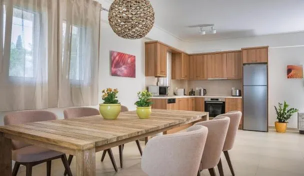 Sami Beach Villas Nefeli坐落于凯法利尼亚岛,配有空调客房和阳台。这家自助式公寓拥有私人泳池、花园、烧烤设施、免费WiFi和免费私人停车位。 这家公寓提供2间卧室、2间浴室、床上用品、毛巾、电视、设施齐全的厨房以及山景露台。2间浴室提供淋浴设施、免费洗浴用品、吹风机和浴袍。