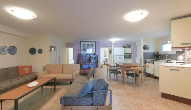 Helen's Stone House享有市景,提供季节性室外泳池和露台,距离西维里海滩(Siviri Beach)约有2.7公里。这家自助式公寓拥有花园、烧烤设施、免费WiFi和免费私人停车位。 这家空调公寓配有2间卧室、起居室、带冰箱和咖啡机的设施齐全的厨房以及1间带淋浴设施和免费洗浴用品的浴室。这家公寓还配备休息区、洗衣机以及1间带吹风机的浴室。 塞萨洛尼基机场距离住宿有82公里。