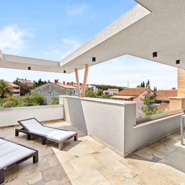 Stunning View Apartment with pool提供季节性室外泳池、花园以及带阳台和免费WiFi的空调住宿,距离Jakov Beach)瓦尔班登海滩(Valbandon Beach)有13分钟步行路程。内部提供私人停车位。 每间房间都提供露台、带冰箱的设施齐全的厨房、带沙发床休息区、平板电视以及带浴缸或淋浴设施的私人浴室。
