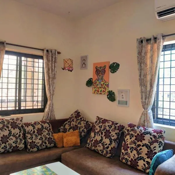 Cozy 1BHK Apartment Near Beach位于坎多林,距离坎多林海滩(Candolim Beach)仅有不到一公里,提供户外游泳池、娱乐场所和礼宾服务。住宿提供内部餐厅、免费私人停车位和免费WiFi。 这家空调公寓配有1间卧室、起居室、带冰箱和电热水壶的设施齐全的厨房以及1间带坐浴盆和淋浴设施的浴室。这家公寓还提供休息区、洗衣机以及1间带免费洗浴用品的浴室。