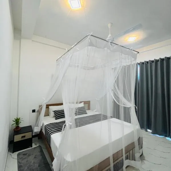 Nicole eco residence位于坦加拉,距离唐加勒海滩有14分钟步行路程,距离亨玛纳亚气孔有14公里,提供免费WiFi以及带露台的花园,享有花园景。内部提供私人停车位。 房间配有阳台、空调、平板电视以及带坐浴盆和吹风机的私人浴室。部分房间还提供带冰箱、迷你吧和吐司机的厨房。 客人可以在附近体验骑行。 这家公寓距离Weherahena Buddhist...