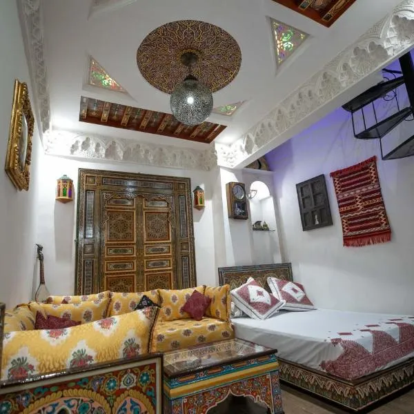 Riad DRISSIA Panoramique de Fès位置优越,位于非斯,提供花园和免费WiFi,距离菲斯王宫、Bab Bou Jeloud Fes和Medersa Bouanania仅有很短的路程。 房间配有露台、空调、电视以及带淋浴设施的私人浴室。 这家公寓的客人可以享用清真早餐。