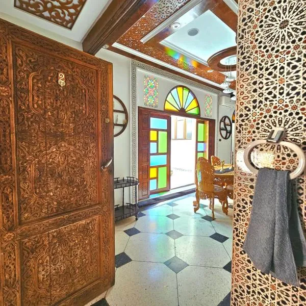 Appartement khmissa entière,p déjeuner inclus坐落于Fès al Bali,享有花园景,距离Bab Bou Jeloud Fes有4分钟步行路程,距离Medersa Bouanania有200米。住宿距离菲斯王宫有1.7公里,配备免费WiFi和免费班车服务。