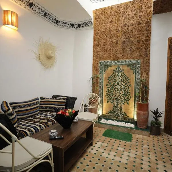 Riad TILÉLI坐落于马拉喀什中心,提供共用休息室、露台和餐厅,距离马若雷勒花园有15分钟步行路程。住宿距离马拉喀什伊夫.圣罗兰博物馆有14分钟步行路程,配备免费WiFi和客房服务。 这家空调公寓配有4间独立卧室、起居室、设施齐全的厨房以及4间浴室。这家公寓也配有4间浴室。 前台工作人员会讲阿拉伯语、英语和法语,可随时为客人提供帮助。 这家公寓提供室内泳池。