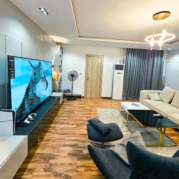 Outstand-Chouette Luxury位于阿布贾,提供共用休息室,距离IBB高尔夫俱乐部有5.6公里,距离阿布贾魔术岛有6.2公里。这家公寓提供免费私人停车位、共用厨房和免费WiFi。 这家空调公寓配有2间卧室、起居室、带冰箱和电热水壶的设施齐全的厨房以及4间带淋浴设施和免费洗浴用品的浴室。这家公寓还配备平板电视、洗衣机以及4间带浴缸的浴室。
