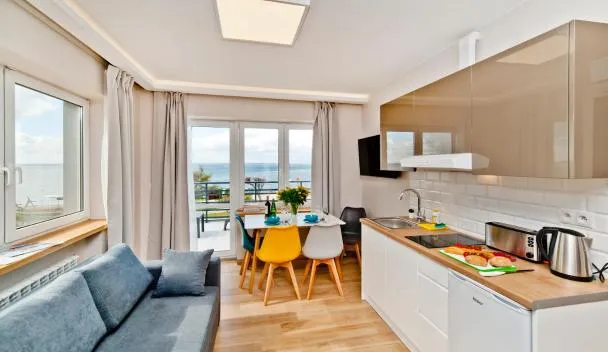 Apartamenty In - Prywatne Apartamenty - Maloves Władysławowo坐落于弗瓦迪斯瓦沃沃,距离瓦拉迪阿沃沃海滩(Wladyslawowo Beach)有3分钟步行路程,距离格丁尼亚港有不到37公里,提供露台、酒吧和免费WiFi。 每间房间都提供带冰箱的设施齐全的厨房、带沙发床休息区、平板电视以及带淋浴设施和免费洗浴用品的私人浴室。