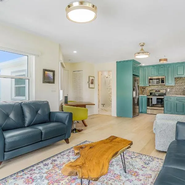 Loft 117 - Charming Downtown Cocoa Beach 1BR位于佛罗里达州的可可比奇,配有庭院,享有海景。这家公寓提供免费WiFi,距离可可海滩(Cocoa Beach)有2分钟步行路程,距离美国海岸警卫队卡纳维拉尔港码头有14公里。 这家公寓为客人提供电视、空调和起居室。这家公寓也为客人提供免费洗浴用品以及带冰箱、洗碗机和烤箱的设施齐全的厨房。
