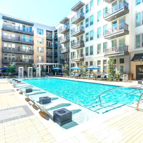 95 Luxury 2B2B Condo DT Fort Worth, Resort Style Pool & Gym, Golf Simulator, 7M to Dickies Stadium, 15M to AT&T stadium坐落于沃思堡,提供私人泳池和阳台,享有花园景。这家住宿距离沃思堡会展中心有2.4公里,配备露台和免费私人停车位。