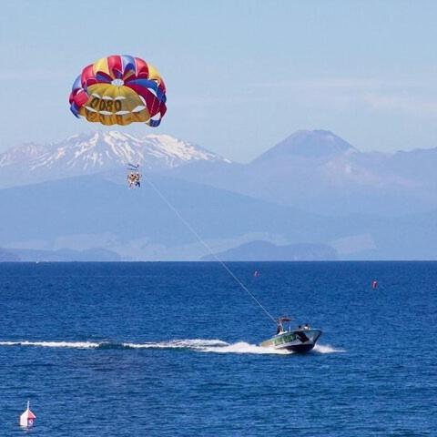 Looking for exciting things to do while visiting Taupo? Then look no further! Parasailing is one of New Zealand’s top-rated activities and with us, you’re in great hands. Want to fly solo or with a friend or two? No problem as long as you’re over 70 kgs. You can fly up to 1000 feet for stunning views of Lake Taupo. All flights are 12 minutes long and come with an optional ‘freefall’ decent. Enjoy an optional refreshing dip in the clear lake waters with the Sky dip near the end of your flight. Rise into the air behind the boat and enjoy the peaceful silence of the skies. Take in the panoramic views of Lake Taupo and the tranquil waters below while you drift through the clouds.