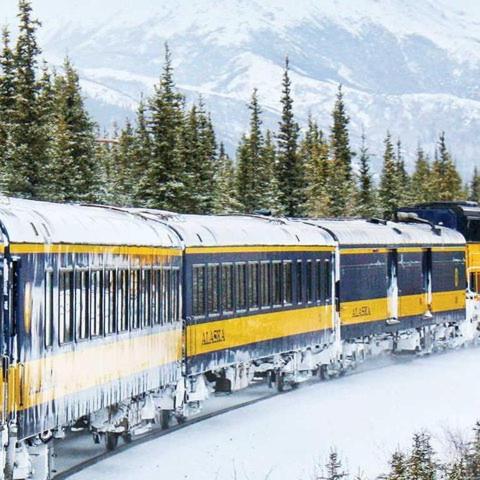 Experience the splendor of winter in Alaska from the comfort of a warm railcar, complete with comfortable seats, large picture windows and onboard dining. The Aurora Winter Train travels between Anchorage and Fairbanks, making the northbound 12-hour journey on Saturdays, as well as select mid-week departures (Tuesdays and/or Thursdays) December through March. Flagstop service is provided along the 50-mile stretch of roadless backcountry south of Hurricane Gulch.