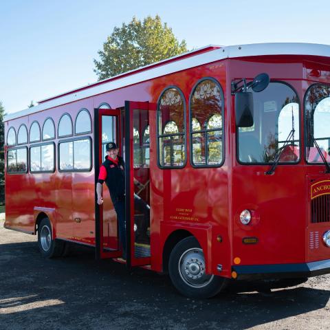 At key stops, hop off the trolley with your guide to experience Anchorage up close: