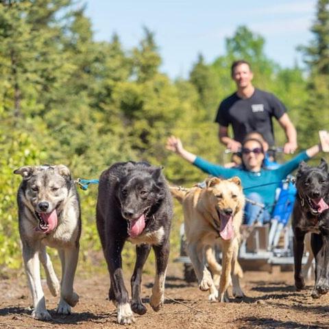 Travel north of Anchorage through the MatSu Valley with great scenery to the mushing capital of the world and go for a sled dog ride! In Willow, AK, you’ll experience a real Iditarod musher’s home kennel and learn all about the amazing and friendly canine athletes. Then go for an exhilarating overland sled dog ride powered by a team of authentic Alaska Huskies! Learn all about the sport of mushing, the world famous 1000 mile Iditarod Sled Dog Race and its history, while getting to pet some friendly fluffy Alaska huskies; you’ll go for a dog-powered ride in a specially designed 2-person cart with your own personal musher. This 5+ hour (depending on group size) adventure will be one you won’t forget. Approximately 1.5 hour drive each way with 1.5 hours at the kennel. (Wheeled carts are used in the summer and sleds are used in the winter when there is sufficient snow on the ground.)