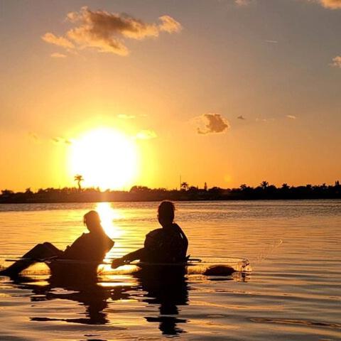 While the sun is setting, our friendly guides lead you on an amazing evening clear kayak or paddle board adventure on the Lagoon. We'll also walk in shallow waters to interact with the bioluminescence.