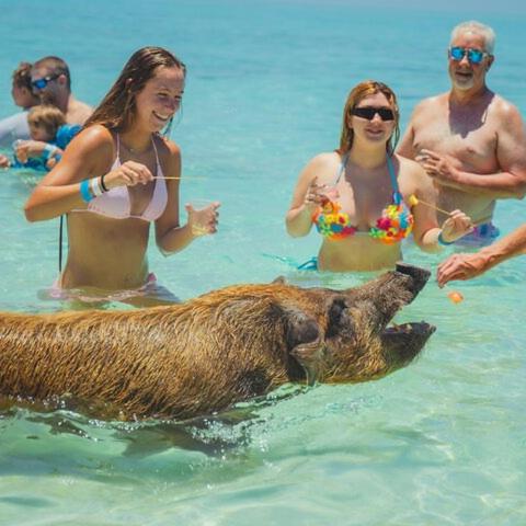NassauThis package tour blends thrill and excitement, featuring our world-famous Swimming Pigs—a must-do for groups with diverse interests! We ensure an unforgettable, all-inclusive experience for everyone. We’ve moved to our newly opened private beach, perfect for both adventure and relaxation. Enjoy fun games and comfortable amenities, including lounge chairs, a volleyball net, cornhole, tug-of-war, hatchet toss, swings, and giant Connect Four. Water toys and floaties are included, plus access to kayaks and paddleboards. For extra thrill, jet skis are available for rent. To make your memories last forever, every guest receives a complimentary photo and video package, capturing all the highlights of your day with us. Conveniently located beside the cruise port, we offer the easiest access for cruise passengers. Our downtown Nassau location is also just 7–10 minutes from Atlantis and within 15 mins of most major hotels. Join us for an exciting, adventure with memories to last a lifetime!Duration: 2 hours 30 minutes - 4 hoursUser reviews, 4.6 out of 5 stars from 486 reviewsFree cancellation availableSee availabilityCurrent price from US$140Available from today