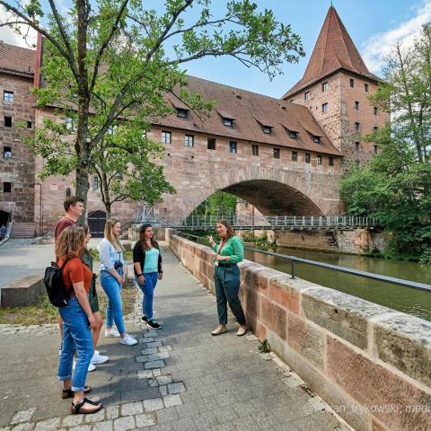 The tour leads from the Hangman's House along the Pegnitz to the main market with the Frauenkirche and the Beautiful Fountain, on to the historic town hall and the famous Sebaldus Church and finally back through Weißgerbergasse, which was largely spared from war damage, over the Maxbrücke and the most beautiful part of the old town.