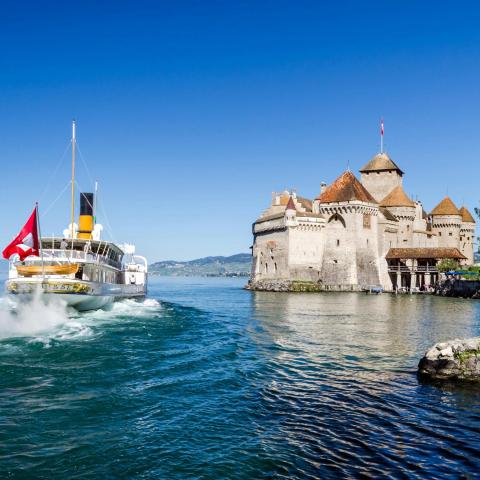 This ticket will provide you with admission to Château Chillon, which is a medieval castle nestled between the Swiss Alps and Lake Geneva. Upon arrival at the castle, you'll be able to pick up a map and a brochure available in 17 languages.