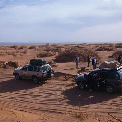From M’hamid by 4×4 near 2 pm to Chigaga dunes,track during 2 hours with a break at the sacred oasis. Arrived at the Grand Dune to be present at the sunset from the top of the highest dune (30 minutes by foot) Come back to the bivouac for tea, songs and darbouka, diner and night under the tent.
