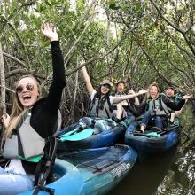 #1 rated Fin Expeditions' goal is to treat everyone like family. Come experience and learn about the magical mangrove tunnels or bioluminescence. Enjoy dolphins or manatee swimming by. - The top-rated activity in Cocoa Beach - Locally-Owned. Our tours are run by local guides that are knowledgeable, friendly and know the area inside and out. - Small Groups. We want our kayak tours to be an intimate experience for every guest. Other companies put 40 or more people in a group. We typically limit the size of our tours to 11 guests. - Trained Guides. At Fin Expeditions our guides are highly trained. Other companies may give their guides as little as 2 hours of training. Our guides receive 50+ hours of training before they are certified to lead a tour. Join Fin Expeditions for a magical bucket-list tour through our beautiful lagoon.