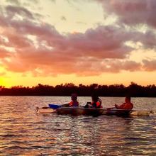Early tour time: Sunset & bioluminescence Tour While the sun is setting, our friendly guides lead you on an amazing evening clear kayak or paddle board adventure on the Lagoon. We'll also walk in shallow waters to interact with the bioluminescence. Search for stingrays and other marine life such as dolphins and manatees as the sun sets. After sunset, we'll paddle into the night as dinoflagellates bioluminescence illuminates the water and fish below us. Later tour time: Bioluminescence & Stargazing At this launch time, it is very dark and the stars shine bright against the night sky as the bioluminescence glows below us. **Tours may be delayed up to 1 hour to allow weather to pass** **We have 2 locations. If severe weather occurs, you will be notified of the new location.** When dinoflagellate bioluminescence season ends, comb jelly bioluminescence season begins! Then, you will also be given high powered multi-colored LED lighting systems for your vessel to further enjoy the glow.