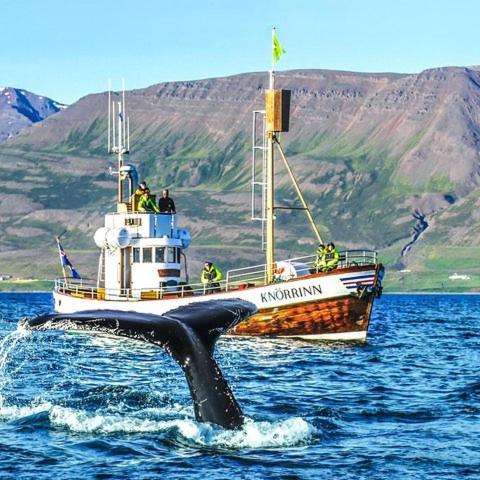 阿克雷里Whale Watching Hauganes是冰岛最古老的观鲸旅行社。我们在Eyjafjörður的峡湾中经营两艘经典的冰岛橡木船,既宽敞又极其稳定,远离开阔的北大西洋。我们将我们的旅行分类为“慢旅行”,因为您将有机会享受峡湾的美丽景观及其野生动物,同时不会感到匆忙,或者您以任何方式打扰野生动物。 我们的旅行是碳中性的,因为我们为每次旅行种植一棵树,并将油与生物柴油混合在阿库雷里(北冰岛的首府,距离我们只有25分钟)从当地餐馆的油炸油中混合。 酒店还设有一间餐厅,一个露营地,Sandvik黑沙滩下的热水浴池以及距离酒店北部仅有5分钟路程的着名啤酒spa。 我们在观鲸和海上钓鱼之旅中提供海钓,这是所有钓鱼爱好者都应该尝试的!用时:3小时30分钟用户点评,10个点评,得到4.7星,满分5星可免费取消查看可订选项现价US$100起12月4日可订