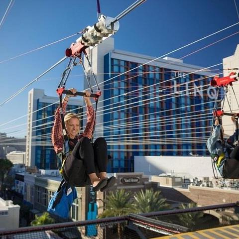 在拉斯维加斯 LINQ Promenade 乘坐 LINQ Zipline