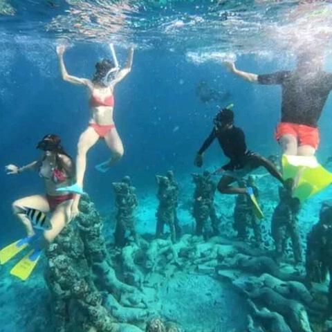 吉利·特拉旺甘浮潜与海龟和水下雕像