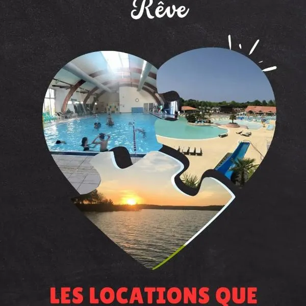 200m de la plage Bungalow LUXE de 44m2 Ménage et draps inclus Camping 5 Etoiles Mayotte Lac Biscarrosse Koyobalys坐落于比斯卡罗斯,距离纳瓦罗斯海滩(Navarrosse Beach)有2.8公里,距离瓢虫公园有27公里,配备免费WiFi以及带室外泳池的花园。