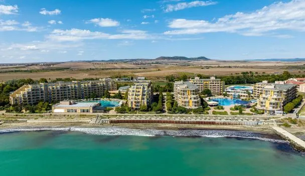 APARTMENT STUDIO DELUXE MARINA CAPE 4 stars resort 33 5享有池景,配备季节性室外泳池、花园和私家海滩,距离阿赫洛伊海滩(Aheloy Beach)约有5分钟步行路程。这家住宿坐落于海滨,拥有露台、餐厅和酒吧。 这家空调住宿配备小厨房。 这家公寓距离水上乐园有11公里,距离航空博物馆有19公里。
