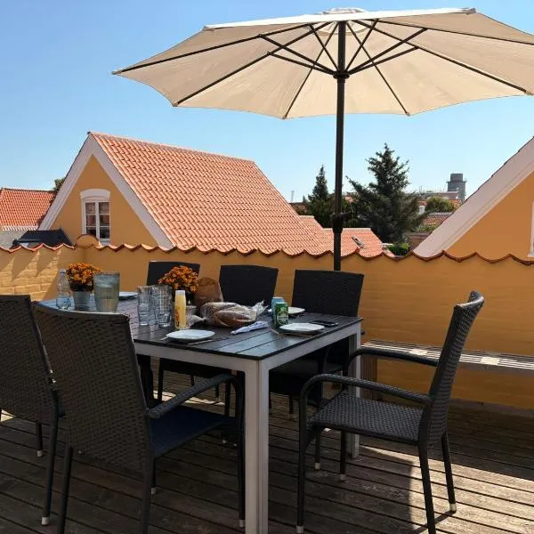 2 Centralt beliggende og lyst indrettet lejlighed位于斯卡恩,距离丹斯特德沙丘和胡尔西格海滩(Damsted Dunes and Hulsig Beach)仅有9分钟步行路程,提供海滨住宿、花园、露台和免费WiFi。 这家2卧室公寓配备起居室、带有线频道的平板电视、带冰箱和洗碗机的设施齐全的厨房以及1间带吹风机的浴室。