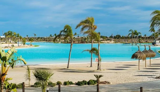 Mar Menor Golf Resort, Luxury Sleeps 6, Lake Views位于穆尔西亚,提供带免费WiFi的湖景客房,配备花园、私家海滩和露台。这家住宿享有花园景,配备庭院和游泳池。 这家空调公寓配有3间卧室、起居室、带冰箱和电热水壶的设施齐全的厨房以及2间带淋浴设施和吹风机的浴室。这家公寓也提供休息区和2间浴室。...