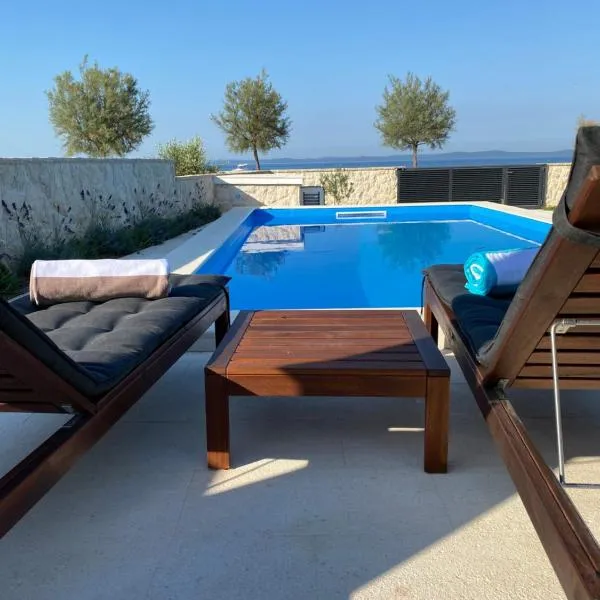 Jimmys Beach Privlaka - direkt am Meer, tollem Blick und beheiztem Pool坐落于普利拉卡,提供私人泳池。这家海滨住宿的客人可以使用露台、免费私人停车位和免费WiFi。 这家空调公寓配有2间独立卧室、带冰箱和洗碗机的设施齐全的厨房以及2间浴室。这家公寓还配备平板电视以及2间带吹风机的浴室。 客人可以使用这家公寓的室外泳池。