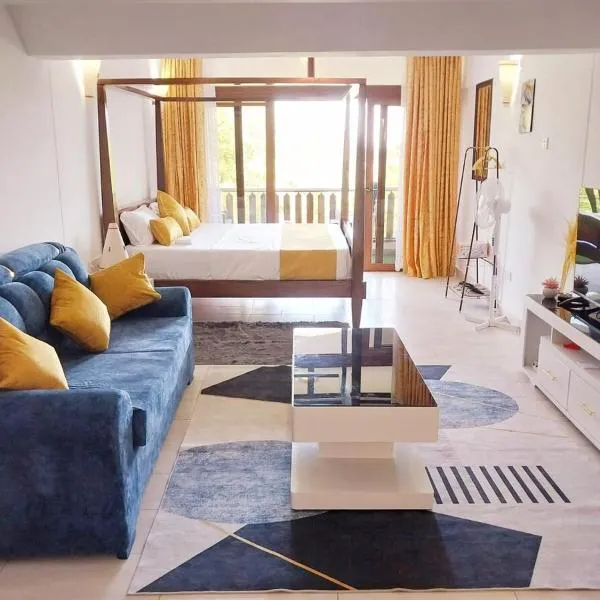 Mzima Beach Residences - Diani Beach坐落于迪亚尼海滩,距离加卢海滩(Galu Beach)有不到一公里,配备健身中心、免费私人停车位、花园和私家海滩。这家尊贵型酒店的每间房间都享有花园景。客人可以使用儿童游乐场和室内泳池。住宿提供24小时前台、机场交通服务、共用休息室以及免费WiFi。