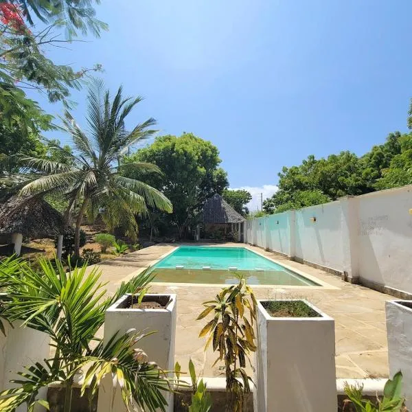 Tombo House位于迪亚尼海滩,享有花园景,提供餐厅、共用休息室、酒吧、花园、全年开放的室外泳池和露台。住宿提供免费WiFi,内部提供私人停车位。 设施齐全的私人浴室提供淋浴设施和吹风机。 这家住宿提供自助、单点或美式早餐。 这家住宿加早餐旅馆提供自行车租赁服务和汽车租赁服务。客人可以在附近体验骑行。 Tombo House距离迪亚尼海滩(Diani...