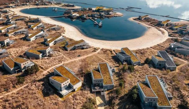 Resort Land & Zee is a new, modern hotel with a unique architectural design. The hotel is located opposite the dunes that lead to the North Sea Beach. All hotel rooms have large windows and a terrace....