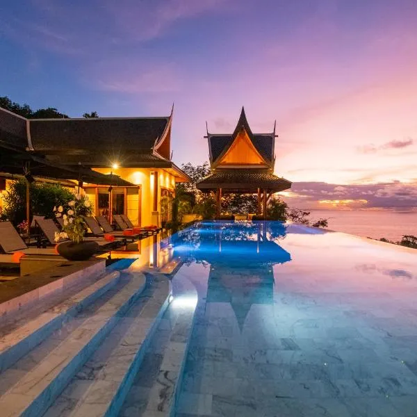 Situated in Phuket Town, 1.5 km from Kamala Beach, Villa Nevaeh - Ocean Front Private Villa Kamala Beach provides accommodation with wellness packages and a fitness room.