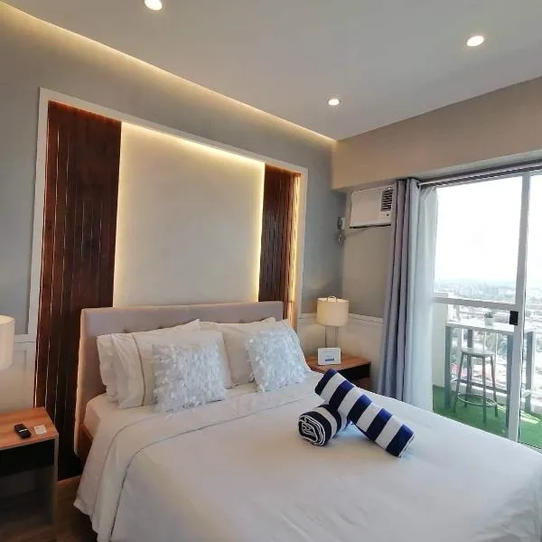 Davao Stay Suites Studio with Samal View APT2-1509, AC, WiFi, Queen, Kitchen位于达沃市,提供花园和露台,距离SM Lanang Premier购物中心有2.9公里,距离人民公园有3.3公里,距离达沃SM City购物中心有7.6公里。