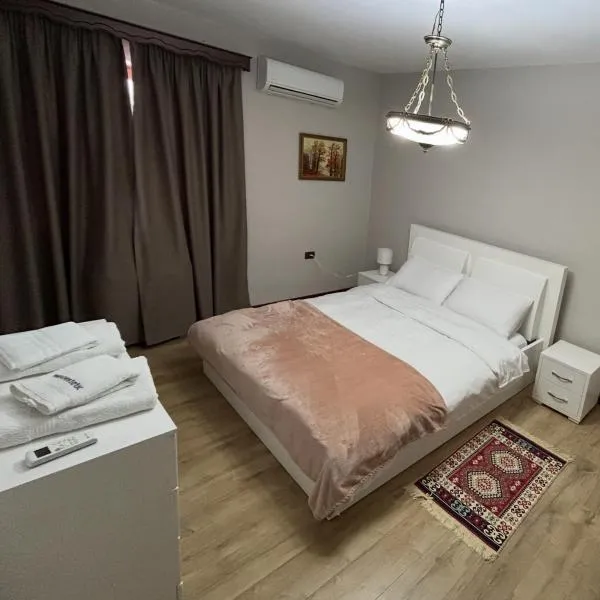 Bujtina Liana Voskopoje位于沃斯科波亚,坐落在一栋建造于2018年的建筑中,提供花园以及带免费WiFi的客房。每间客房都配有市景露台。 这家旅馆的每间客房都配备书桌、平板电视、私人浴室、床上用品和毛巾。部分客房配备带冰箱、洗碗机和炉灶的厨房。客房均提供衣柜。